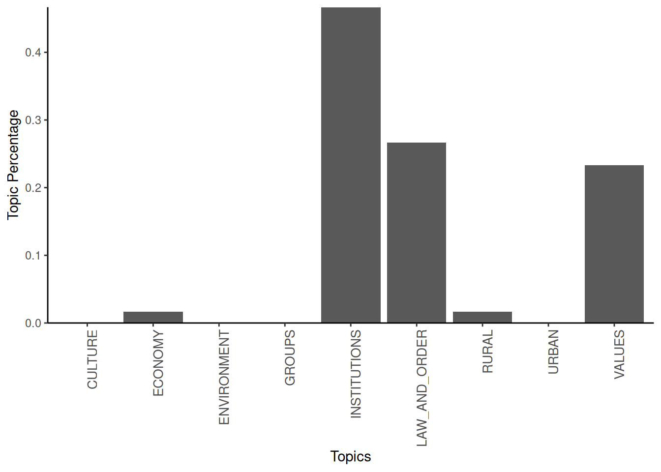 labs(x = "Topics", y = "Topic Percentage") + scale_y_continuous(expand = c(0,