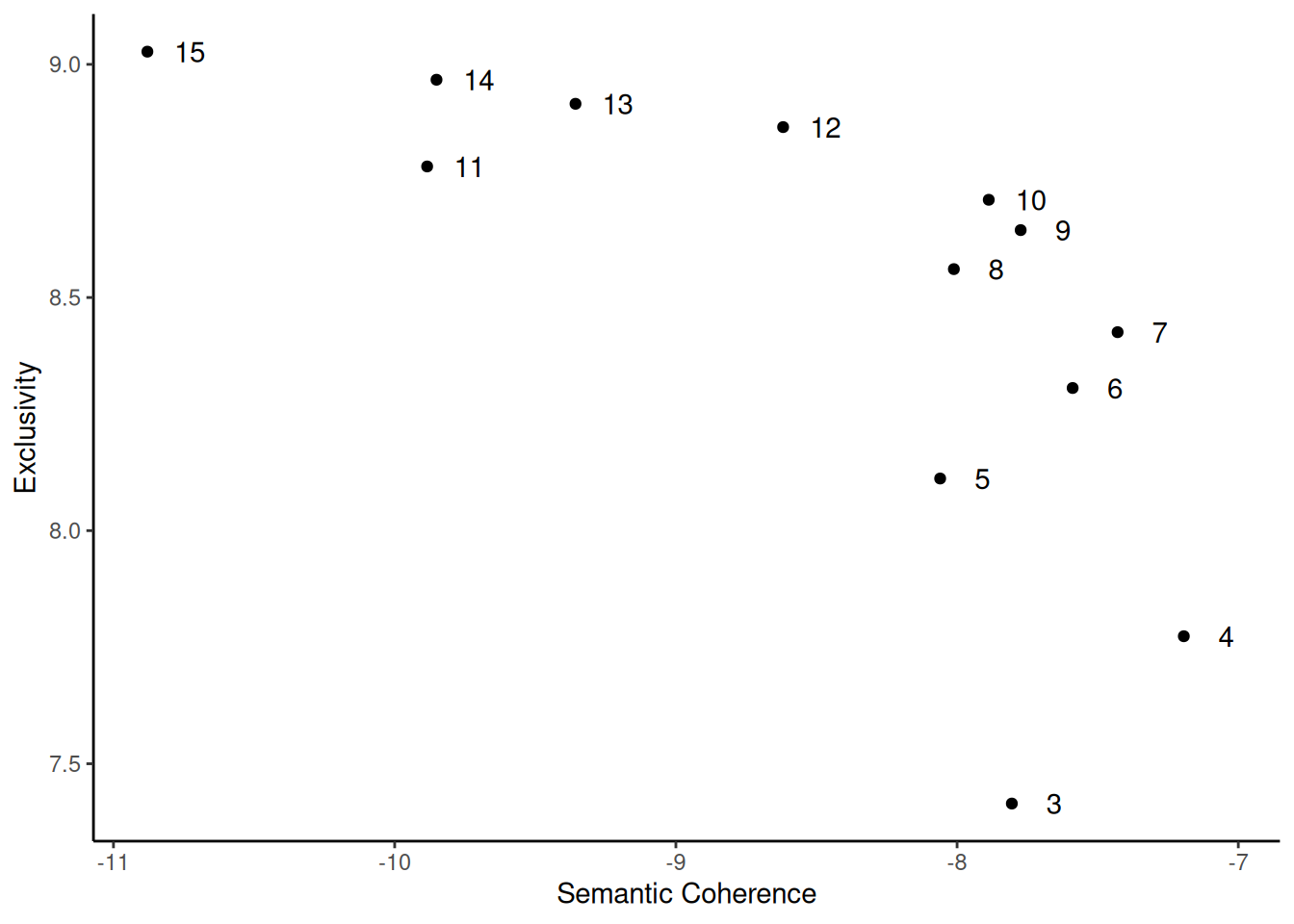 label = findingk$K, nudge_x = 0.15) + scale_x_continuous("Semantic Coherence") +