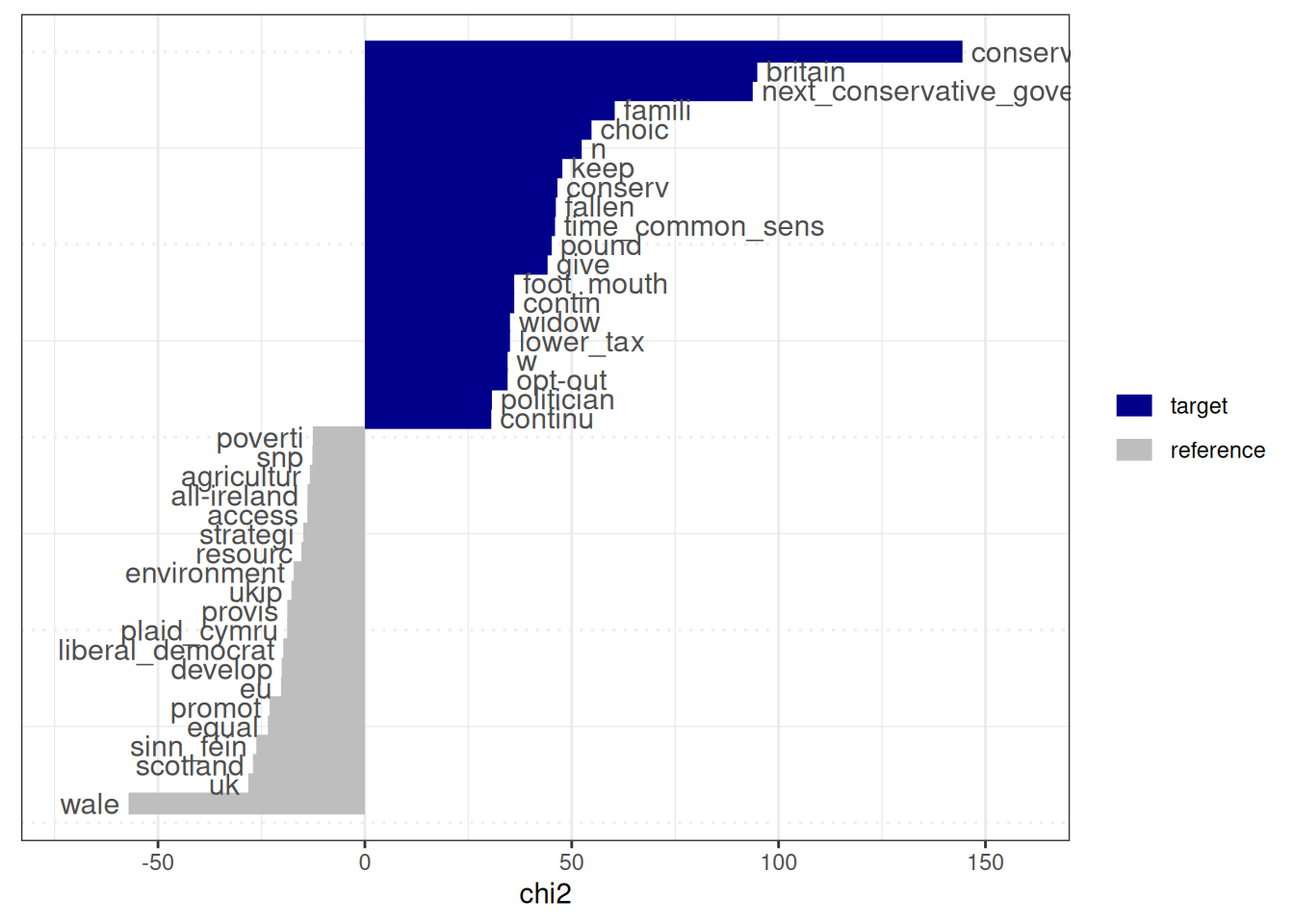 head(keyness_conservative, 20)## feature chi2 p n_target n_reference